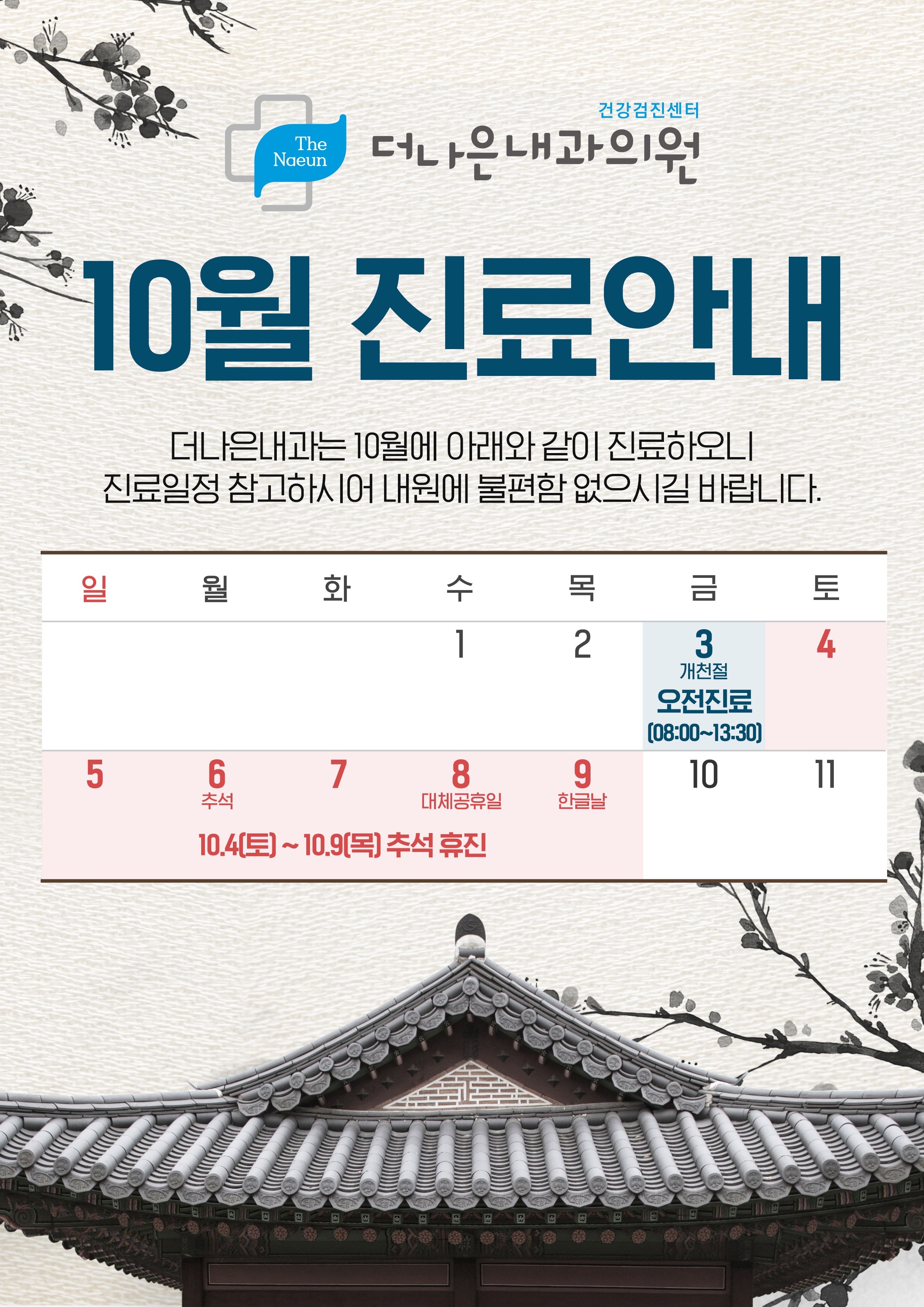 ※ 의료진마다 진료시간에 차이가 있으므로 참고 부탁드립니다.